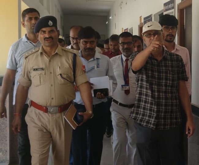 रक्सौल रनिंग रूम में जांच करने पहुंचे एडीआरएम आलोक कुमार झा व आरपीएफ के असिस्टेंट कमांडेंट आरके सिन्हा। जागरण