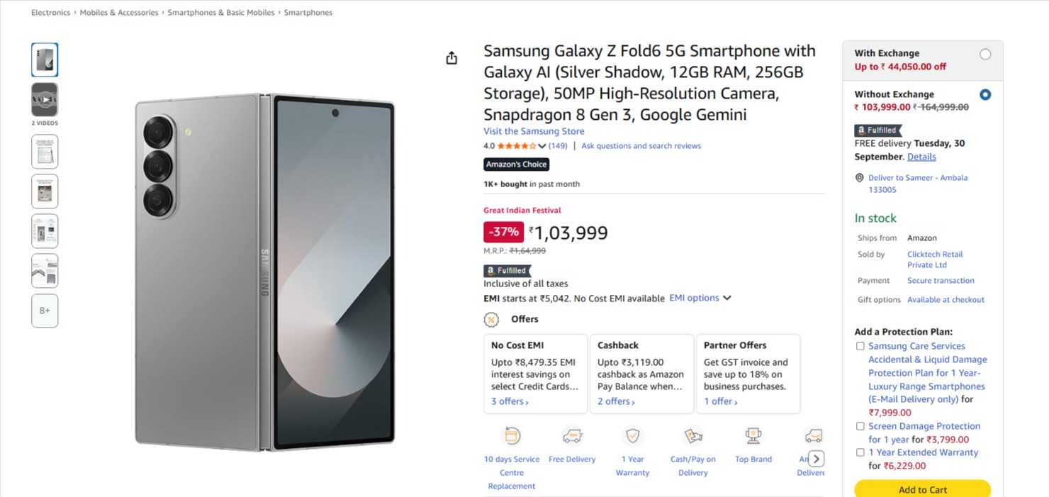 Samsung Galaxy Z Fold 6 पर सबसे बड़ा डिस्काउंट ऑफर: मिस हुई डील तो बाद में होगा फील!