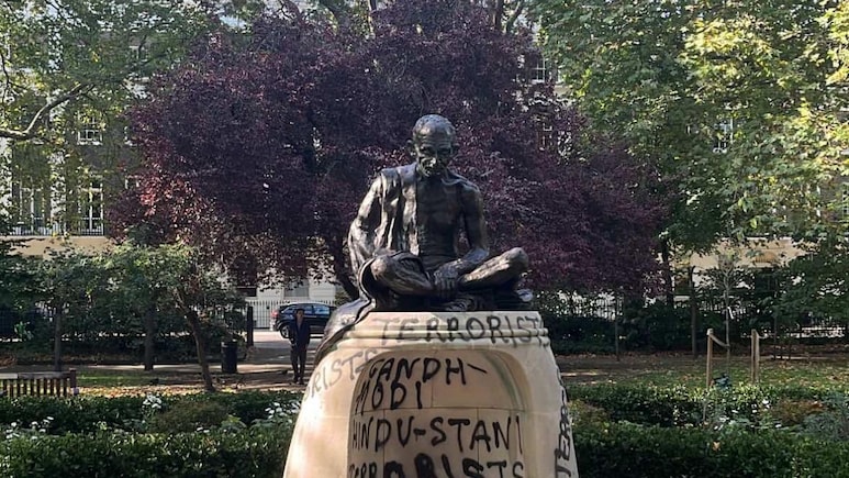 The plinth of the iconic statue, which depicts the Father of the Nation in a seated meditative pose, was discovered daubed with some disturbing graffiti. The Indian mission said it has reported the desecration to the local authorities, even as its officials are at the site to coordinate the restoration of the monument to its original state.