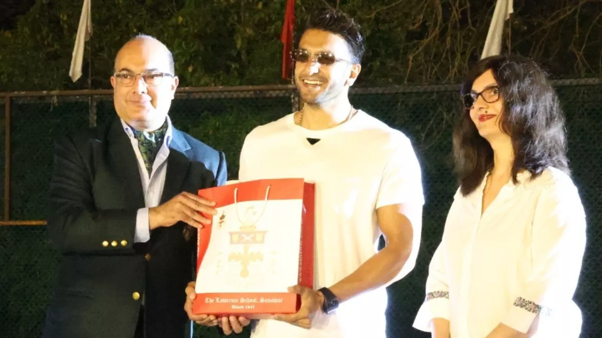द लॉरेंस स्कूल सनावर के हेडमास्टर हिम्मत सिंह ढिल्लों अभिनेता रणवीर सिंह को सम्मानित करते हुए। सौ. स्कूल