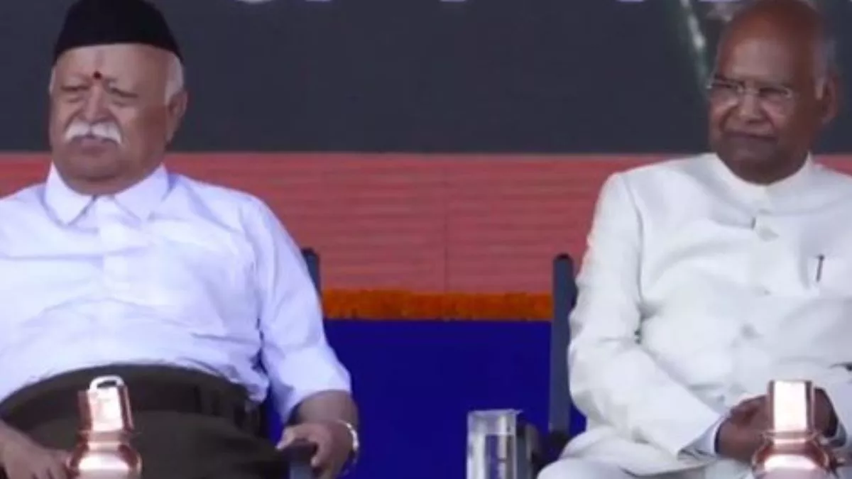 आरएसएस प्रमुख मोहन भागवत और पूर्व राष्ट्रपति रामनाथ कोविंद।
