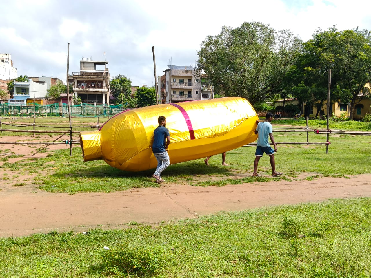 अधिक ऊंचाई के कारण इसे चार हिस्सों में बनाकर जोड़ा गया है। बारिश के कारण इसे सुरक्षित ढक कर रखा गया था। शाम छह बजे आकर्षक आतिशबाजी के साथ इसका दहन किया जाएगा।