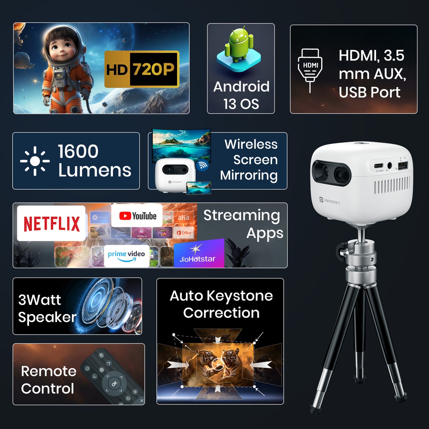 कंपनी इस प्रोजेक्टर को स्टूडेंट्स, वर्किंग प्रोफेशनल्स और एंटरटेनमेंट शौकीनों को टार्गेट कर रही है, जो पोर्टेबल प्रोजेक्टर चाहते हैं। ये Android 13 OS पर चलता है और बड़े OTT ऐप्स का सपोर्ट करता है, जिससे एक्सटर्नल स्ट्रीमिंग बॉक्स की जरूरत नहीं रहती। इसका वजन सिर्फ 250 ग्राम है और इसमें ट्राइपॉड और रिमोट मिलता है। आइए जानते हैं पूरी डिटेल।