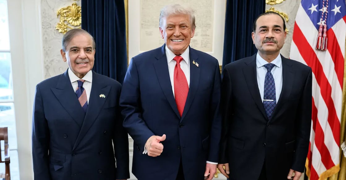 ഓഗസ്റ്റിൽ അസിം മുനീർ വീണ്ടും യുഎസ് സന്ദർശിച്ചു. ഫ്ലോറിഡയിലെ ടാമ്പയിൽ ജനറൽ മൈക്കിൾ എറിക് കുറില്ലയുടെ വിടവാങ്ങൽ ചടങ്ങിൽ പങ്കെടുക്കാൻ യുഎസ് സന്ദർശിക്കുന്നുവെന്നായിരുന്നു ഔദ്യോഗികഭാഷ്യം. എന്നാൽ യുഎസ് സംയുക്ത സേനാമേധാവി ജനറൽ ഡാൻ കെയ്ൻ ഉൾപ്പെടെയുള്ള സൈനിക നേതൃത്വവുമായും ഉന്നത ഉദ്യോഗസ്ഥരുമായും അസിം മുനീർ കൂടിക്കാഴ്ച നടത്തിയെന്നാണ് റിപ്പോർട്ടുകൾ. പിന്നാലെ പാക്കിസ്ഥാനിലെ ബലൂചിസ്ഥാൻ ആസ്ഥാനമായി പ്രവർത്തിക്കുന്ന സായുധസംഘമായ ബലൂചിസ്ഥാൻ ലിബറേഷൻ ആർമിയെ (ബിഎൽഎ) വിദേശ ഭീകര സംഘടനയായി യുഎസ് പ്രഖ്യാപിച്ചു.     വൈറ്റ് ഹൗസിൽ നടന്ന ഡോണൾഡ് ട്രംപ് - ഷെഹ്ബാസ് ഷരീഫ് കൂടിക്കാഴ്ച. യുഎസ് വൈസ് പ്രസിഡന്റ് ജെ.ഡി.വാൻസ്, സ്റ്റേറ്റ് സെക്രട്ടറി മാർക്കോ റൂബിയോ, പാക്കിസ്ഥാൻ സേനാമേധാവി അസിം മുനീർ എന്നിവർ സമീപം. (Photo: whitehouse.gov/gallery)