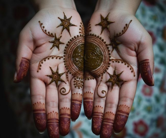यह सबसे पुरानी और सदाबहार मेहंदी डिजाइन्स में से एक है। इसकी सबसे अच्छी बात यह है कि यह कम समय में बन जाता है और हाथों को पूरी तरह से भरा-भरा लुक देता है। हथेली के ठीक बीच में एक बड़ी-सी गोल टिक्की बनाएं। इस टिक्की को आप जाल वाले पैटर्न या लाइनों से भर सकती हैं। उसके चारों ओर छोटे-छोटे फूल या पत्तियां बनाकर एक गोलाकार बॉर्डर बनाएं। यह मेहंदी डिजाइन पारंपरिक और आधुनिक दोनों तरह के पहनावे के साथ खूब जंचता है।