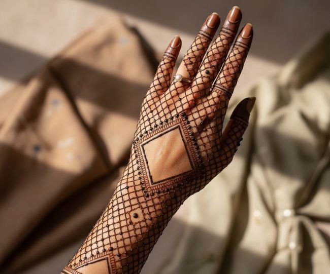यह मेहंदी डिजाइन थोड़ा बारीक काम वाला है, लेकिन इसका रिजल्ट बहुत ही खूबसूरत होता है। आप अपनी हथेली के पिछले हिस्से पर एक जालीदार पैटर्न बना सकती हैं। इसके लिए आप सीधी या तिरछी रेखाओं का इस्तेमाल कर सकती हैं और छोटे-छोटे क्रॉस बनाकर एक सुंदर जाली बना सकती हैं। यह जाली बीच में खाली जगह छोड़ती है, जिससे यह बहुत ही मॉडर्न और क्लासी लगती है। खास बात है कि यह मेहंदी डिजाइन वेस्टर्न और इंडियन दोनों तरह के आउटफिट्स के साथ खूब जंचता है।
