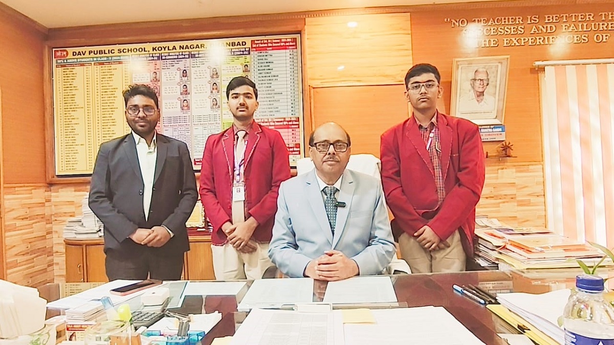 छात्रों के साथ डीएवी कोयला नगर के प्राचार्य।