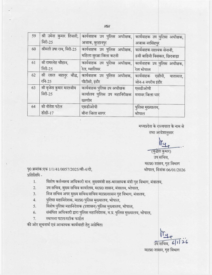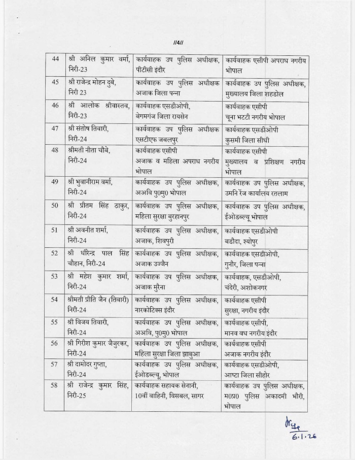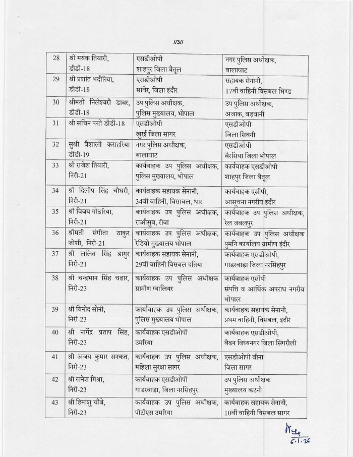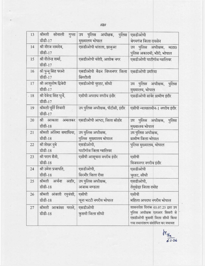 इसके अलावा झाबुआ जिले के थांदला में पदस्थ डीएसपी नीरज नामदेव को पुलिस अकादमी भौंरी, भोपाल में नई जिम्मेदारी सौंपी गई है।