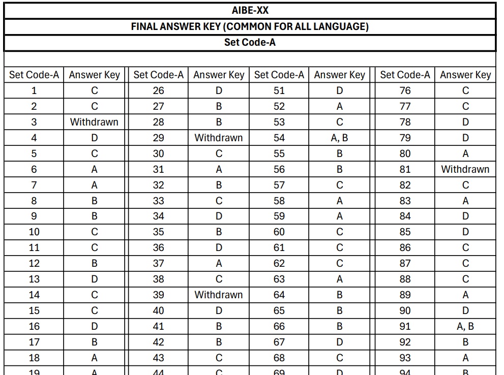 अभ्यर्थी फाइनल आंसर द्वारा अपने प्रश्न उत्तरों का मिलान करके रिजल्ट का अनुमान लगा सकते हैं। ध्यान रखें कि अंतिम उत्तर कुंजी पर किसी भी प्रकार से ऑब्जेक्शन दर्ज नहीं किया जा सकता है।