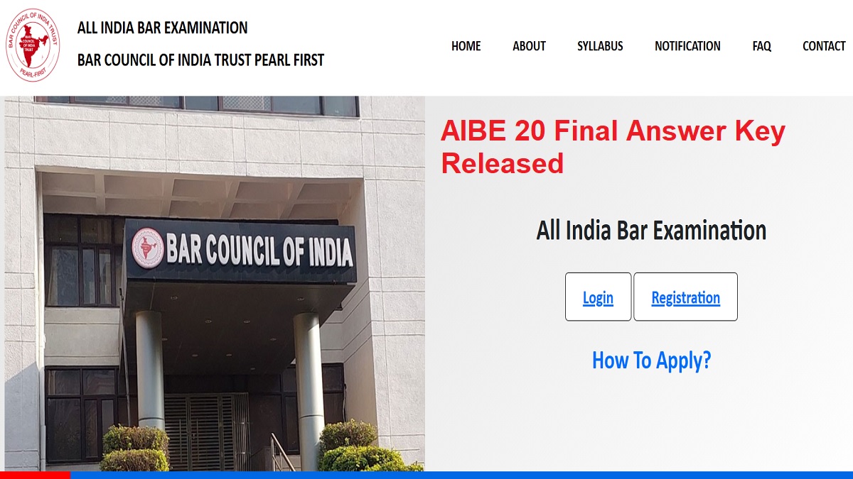- एआईबीई फाइनल आंसर डाउनलोड करने के लिए सबसे पहले आधिकारिक वेबसाइट allindiabarexamination.com पर विजिट करें।