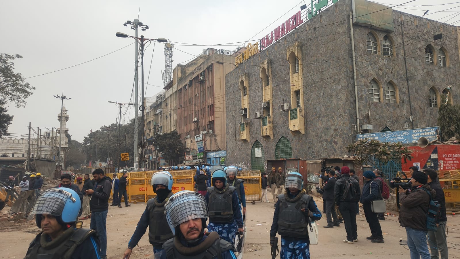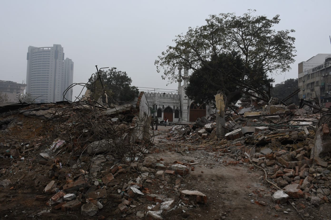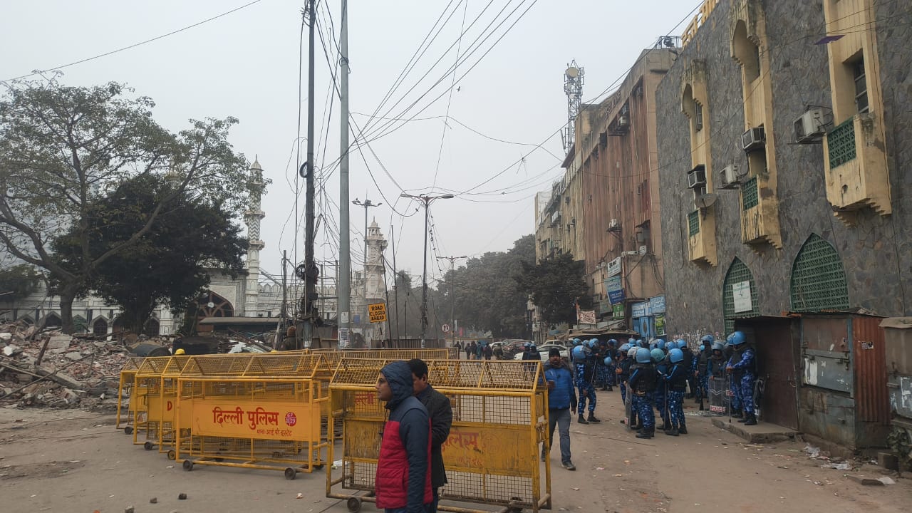 दिल्ली में तुर्कमान गेट स्थित फैज-ए-इलाही मस्जिद के पास अवैध निर्माण ढहाया गया। जागरण