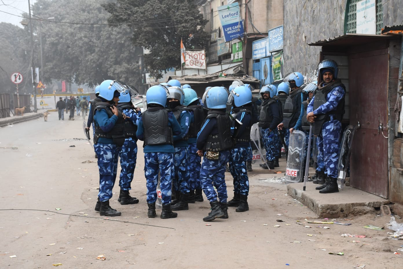 दिल्ली में रामलीला मैदान के पास हुए इस एक्शन के दौरान कानून व्यवस्था बनाए रखने के लिए मौके पर भारी पुलिस बल तैनात किया गया था।