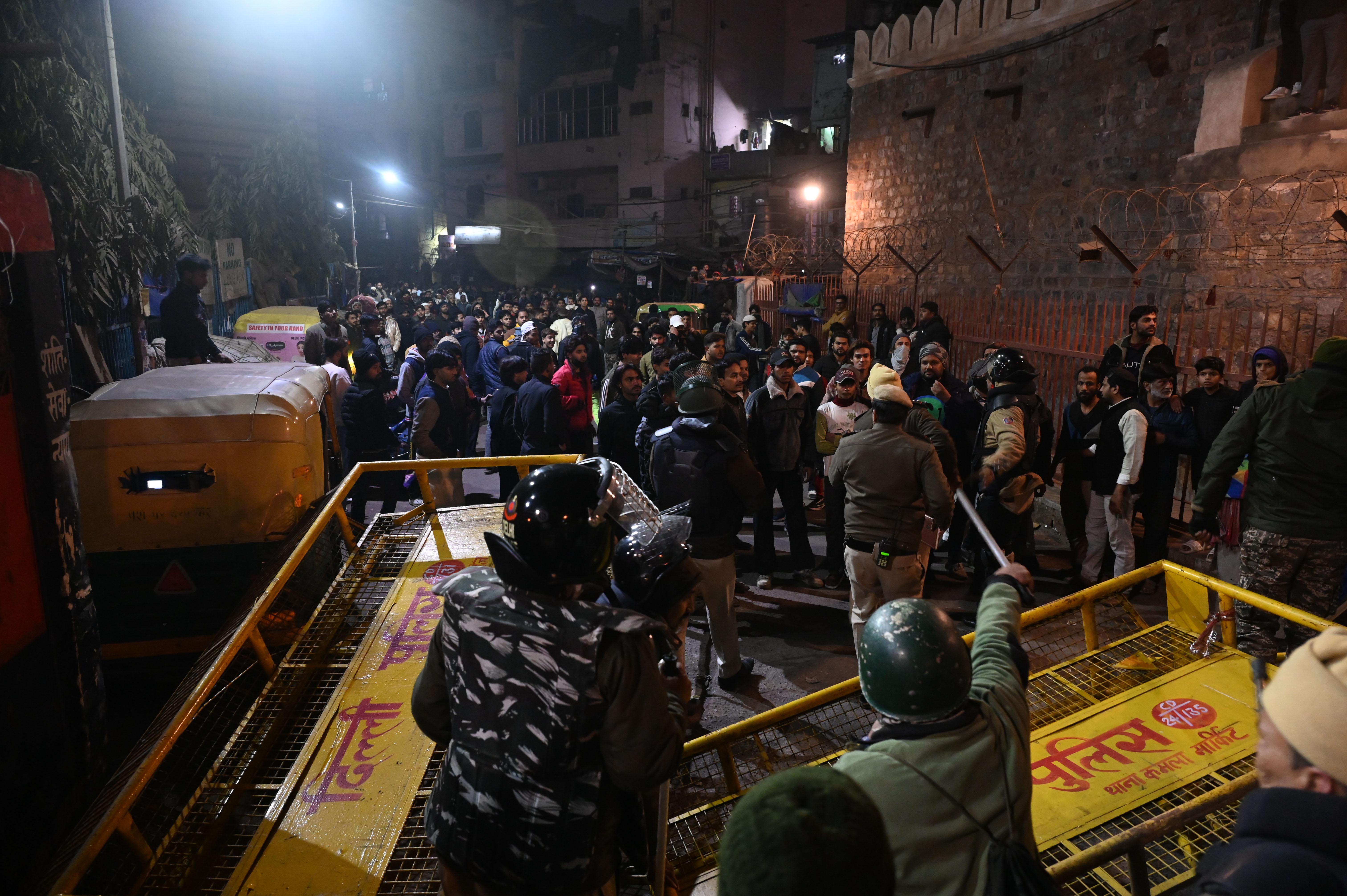 तुर्कमान गेट के पास फैज-ए-इलाही मस्जिद के पास से हटाए जा रहे अतिक्रमण की कार्रवाई का विरोध करती उग्र भीड़ को हटाते अर्धसैनिक बल के जवान। जागरण |