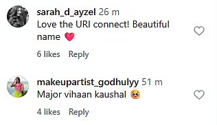 अब फैंस ने इसका कनेक्शन विक्की की फिल्म \“उरी: द सर्जिकल स्ट्राइक\“ से ढूंढ निकाला है। विक्की ने साल 2019 में रिलीज हुई इस फिल्म में मेजर विहान सिंह शेरगिल का किरदार निभाया था। यानी, अभिनेता ने पहले भी अपने बेटे के नाम का किरदार निभाया है। विक्की के कई प्रशंसकों ने इस बात पर ध्यान दिया और उन्होंने पोस्ट पर कमेंट करना शुरू कर दिया। View this post on Instagram