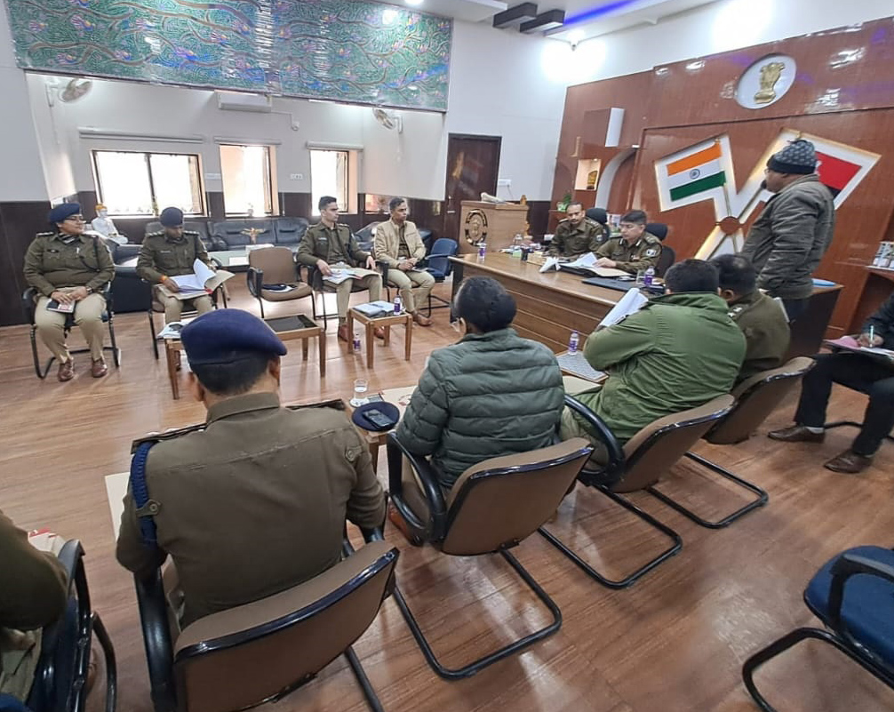 साइबर अपराध बढ़ते मामलों को लेकर बैठक करते रेंज आईजी जितेंद्र राणा और एसएसपी कार्तिकेय के शर्मा। फोटो जागरण