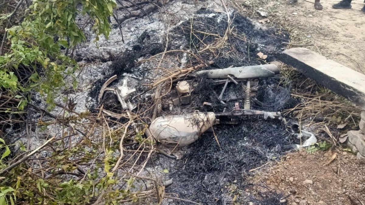 आग से खाक हुई बाइक