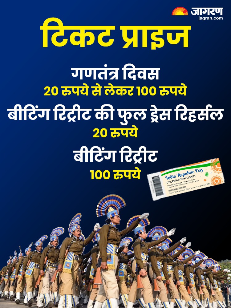 गणतंत्र दिवस परेड, बीटिंग रिट्रीट की फुल ड्रेस रिहर्सल और बीटिंग रिट्रीट में शामिल होने के लिए टिकट की कीमत अलग-अलग निर्धारित की गई है। गणतंत्र दिवस परेड की कीमत 20 रुपये से लेकर 100 रुपये तक, बीटिंग रिट्रीट की फुल ड्रेस रिहर्सल टिकट की कीमत 20 रुपये और बीटिंग रिट्रीट प्रोग्राम टिकट की कीमत 100 रुपये निर्धारित की गई है। इसके साथ ही आप 14 जनवरी तक टिकट खरीद सकते हैं।
