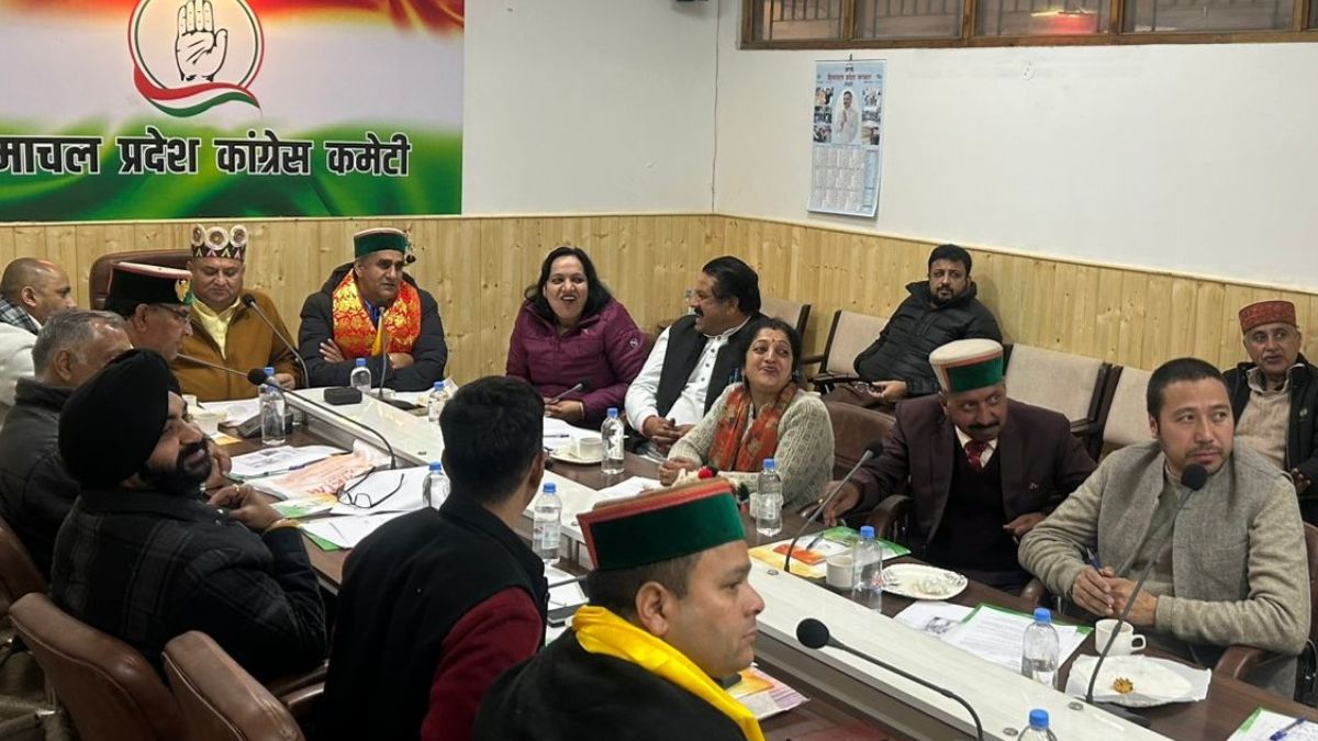 शिमला में हिमाचल प्रदेश कांग्रेस अध्यक्ष विनय कुमार की अध्यक्षता में आयोजित बैठक में उपस्थित जिला अध्यक्ष।