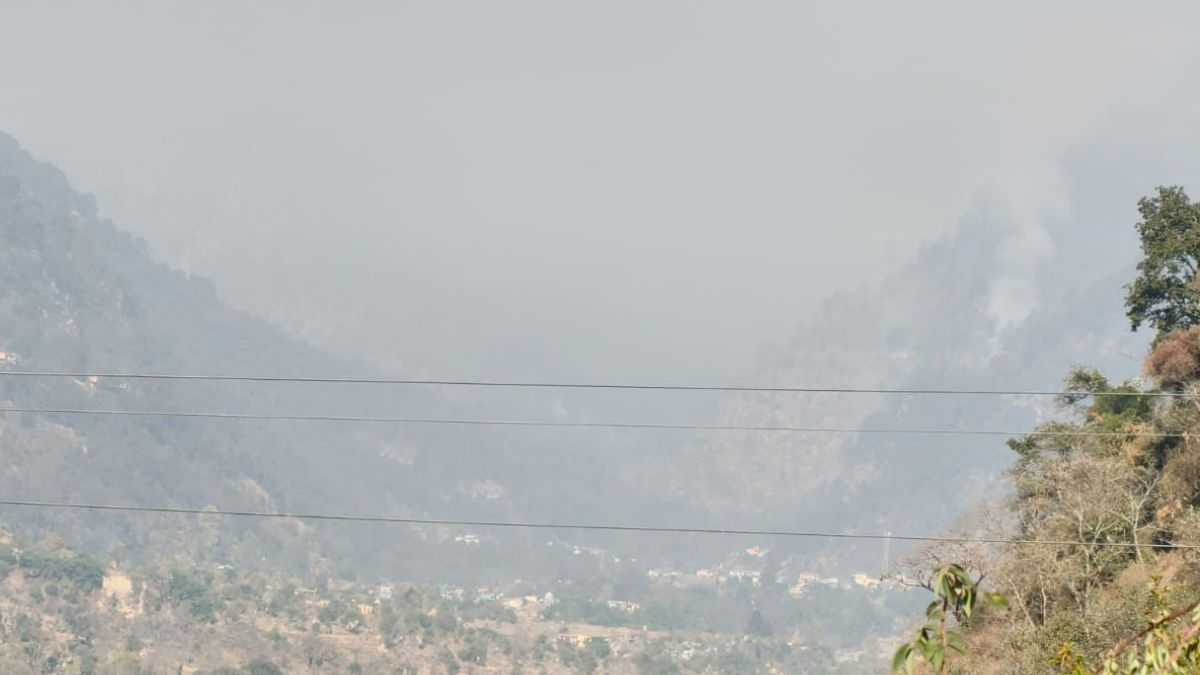 मंडल घाटी में जंगल में लगी आग के धुंए से छाई घुंध । जागरण