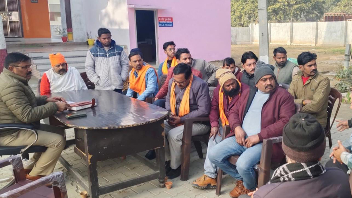 थाने में शि कायत करते हिंंदू संगठन के कार्यकर्ता