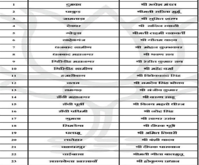 Jharkhand Politics: भाजपा ने जिला अध्यक्ष के नामों की घोषणा की, देखें पूरी सूची
