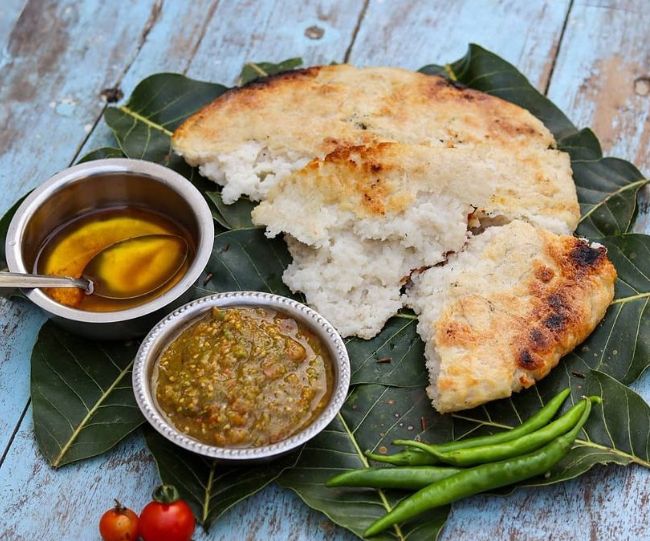 यह रोटी अपनी खास कुकिंग स्टाइल के लिए जानी जाती है। चावल के आटे से बनी इस मोटी रोटी को पलाश या केले के पत्तों के बीच रखकर कोयले की आंच पर सेंका जाता है। पत्तों की सौंधी महक इस रोटी के स्वाद को दोगुना कर देती है।