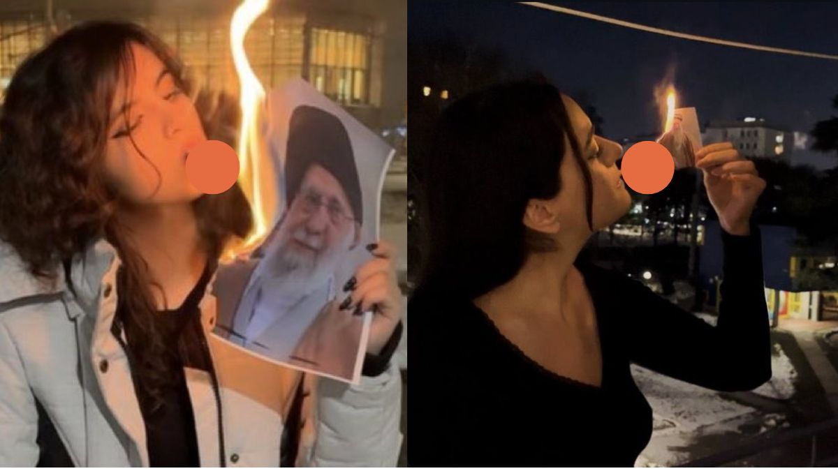 खामनेई की तस्वीरों से सिगरेट जलाकर महिलाओं का प्रदर्शन