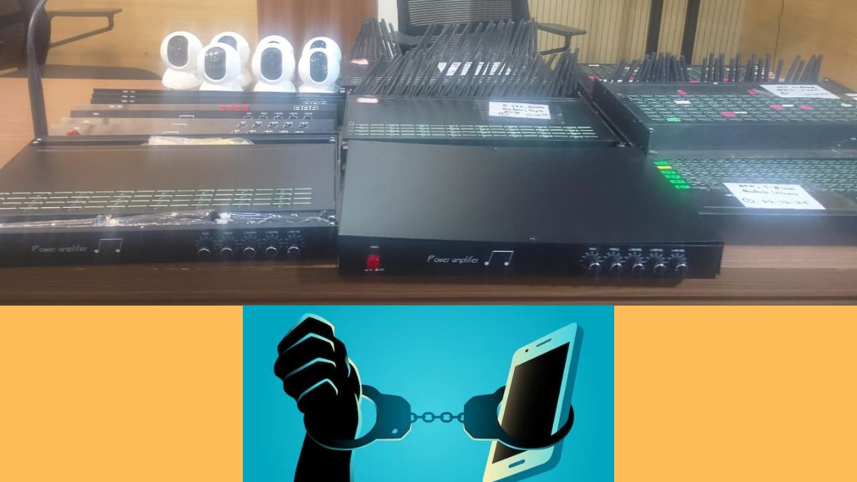 आरोपितों के कब्जे से बरामद सिम बाक्स व अन्य अपकरण। दिल्ली पुलिस
