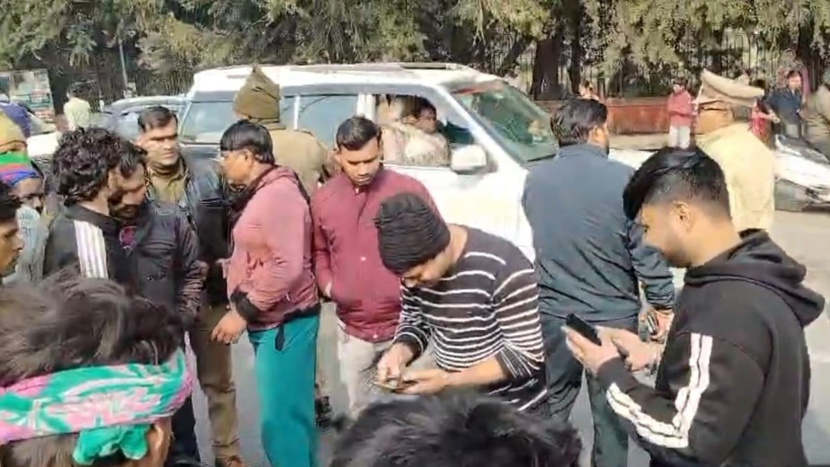 सिकंदरा तिराहा पर हुई दुर्घटना के बाद मौके पर लगी भीड़।