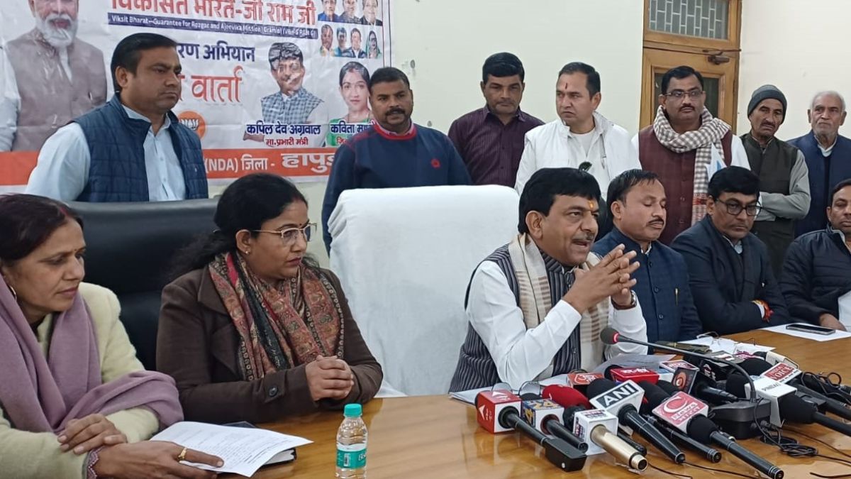 जागरण संवाददाता, हापुड़। प्रदेश के कौशल विकास व जिले के प्रभारी मंत्री कपिल देव अग्रवाल ने कहा कि मनरेगा में कामगारों से कच्ची मिट्टी के कार्य कराए जाते थे। उसमें सौ दिन कार्य देना होता था। अब नरेंद्र मोदी की सरकार ने इसको सुधार करके बेहतर बना दिया है, जिसका लाभ सीधे तौर पर कामगारों को मिलेगा। इसके साथ ही नाम में बदलाव होना तय था। अब इसको वीबी-जीरामजी के नाम से जाना जाएगा। भाजपा सरकार महात्मा गांधी का हृदय से सम्मान करती है। उनके चश्मा को स्वच्छता के प्रतीक के रूप में हमने लगाया है। पता नहीं कुछ लोगों को राम के नाम से इतनी चिढ़ क्यों है?