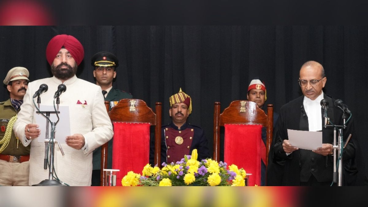न्यायाधीश मनोज कुमार गुप्ता को मुख्य न्यायाधीश पद की शपथ दिलाते राज्यपाल ले. जनरल गुरमीत सिंह (सेनि)। सूवि