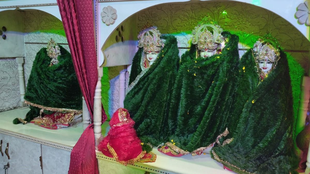 गर्म पोशाक व कंबलों से अपने आराध्य सर्दी बचा रहे भक्त