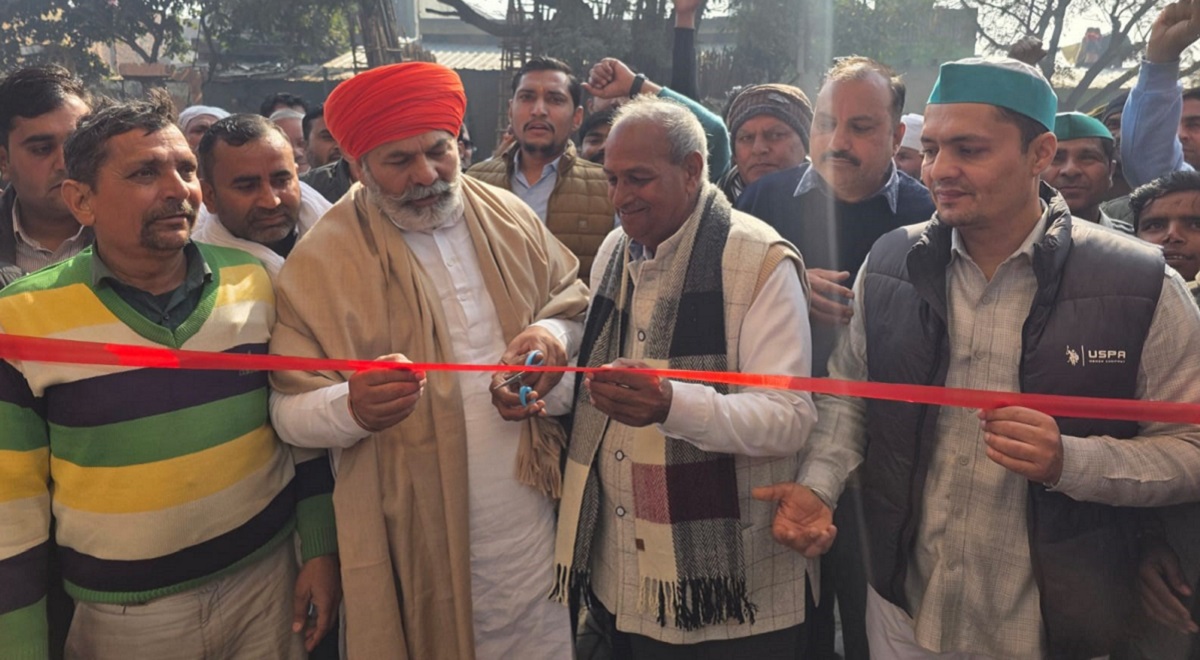 खुर्जा के गांव कलंदरगढ़ी के निकट निश्शुल्क कोचिंग सेंटर का फीता काटकर शुभारंभ करते भाकियू के राष्ट्रीय प्रवक्ता राकेश टिकैत। जागरण