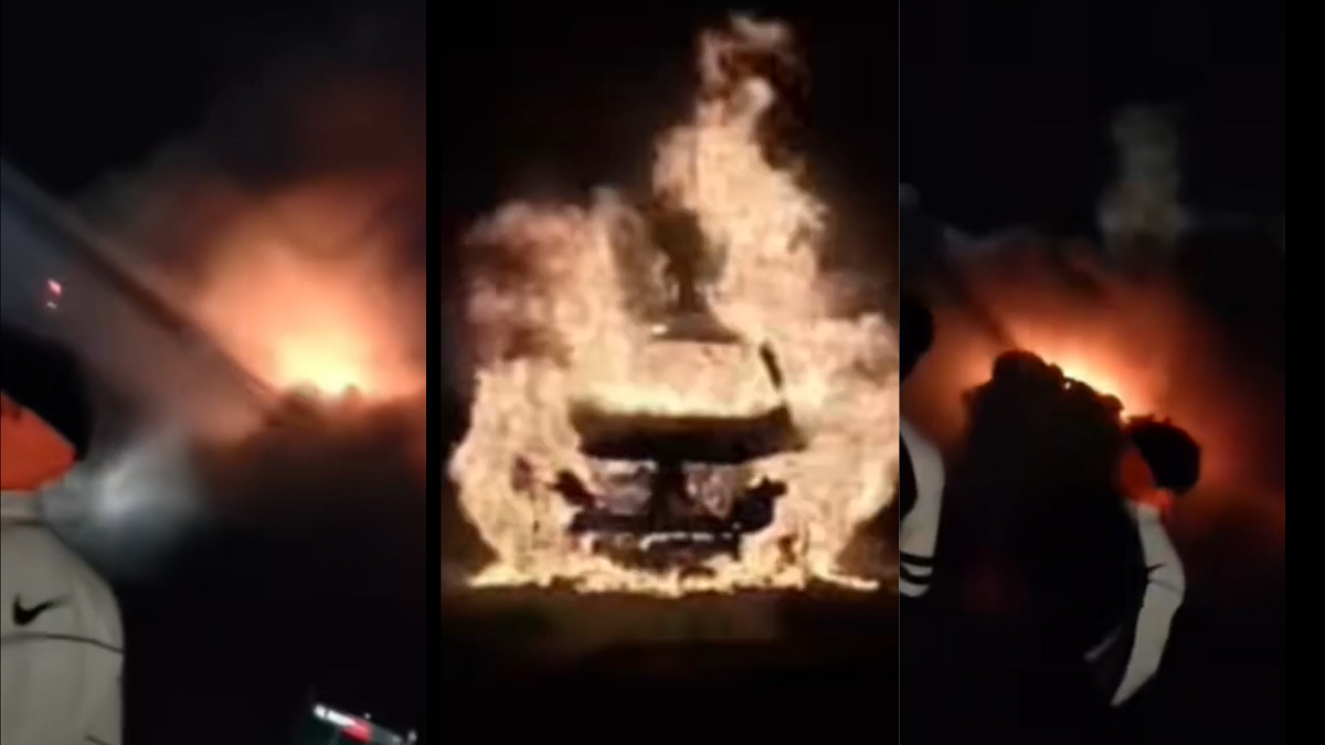 फरीदाबाद में चलती कार में लगी आग। (Pic - जागरण वीडियो ग्रैब)
