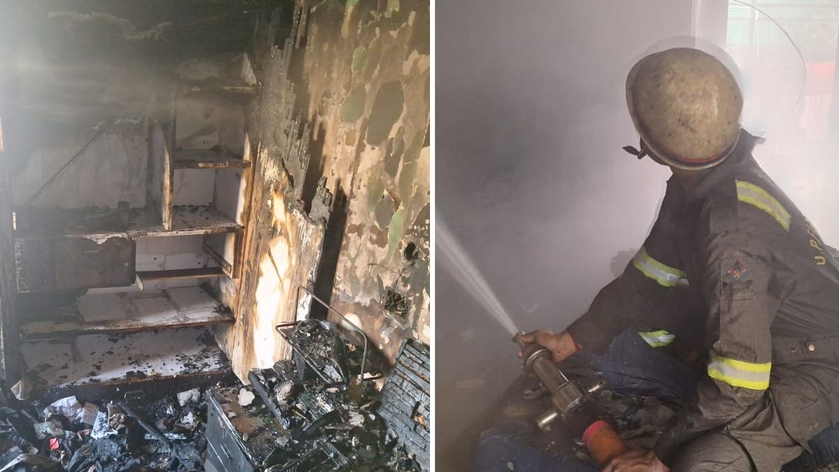 फ्लैट में रखा सारा सामान जल गया, दमकल टीम ने आग बुझाई