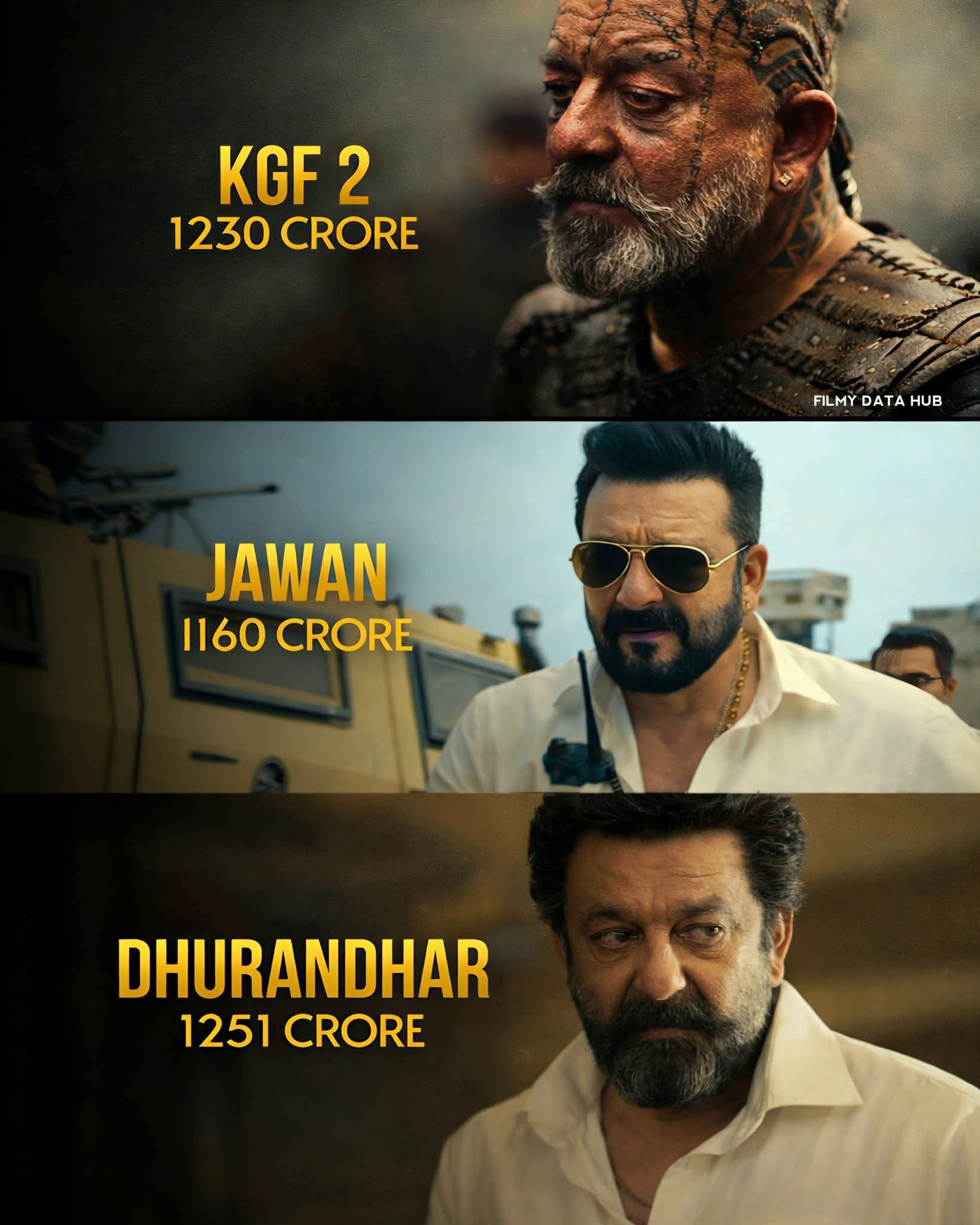 आपको ये जानकार हैरानी होगी कि संजय दत्त के अलावा कोई भी हिंदी और साउथ सिनेमा का एक्टर 1000 करोड़ से ज्यादा का ग्लोबली बिजनेस करने वाली तीन फिल्मों का हिस्सा नहीं रहा है।