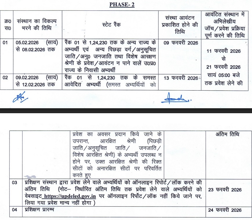 | आवंटित संस्थान में डॉक्युमेंट वेरिफिकेशन एवं प्रवेश प्रक्रिया पूर्ण करने की तिथि | 17 से 30 जनवरी 2026 |