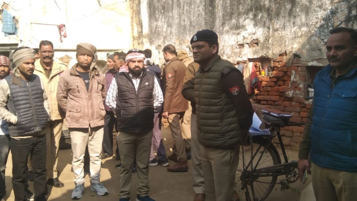 घटनास्थल पर जांच करने पहुंची पुलिस टीम।