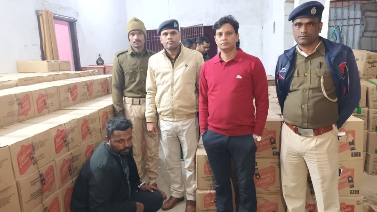बिस्किट की आड़ में ले जा रहे 4752 लीटर अंग्रेजी शराब जब्त, तस्कर गिरफ्तार