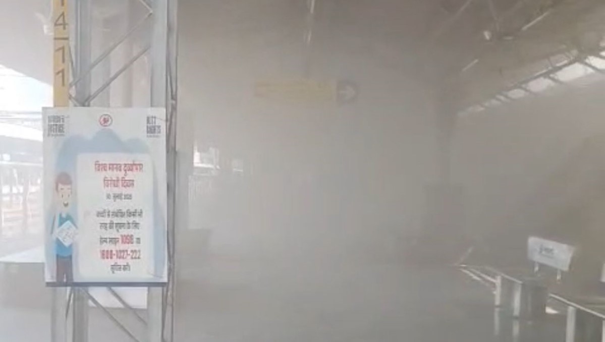 स्टेशन के प्लेटफॉर्म नंबर-1 पर स्थित सिग्नल एंड टेलीकॉम (S&T) कार्यालय के पास अगलगी के बाद उठता काला धुआं।