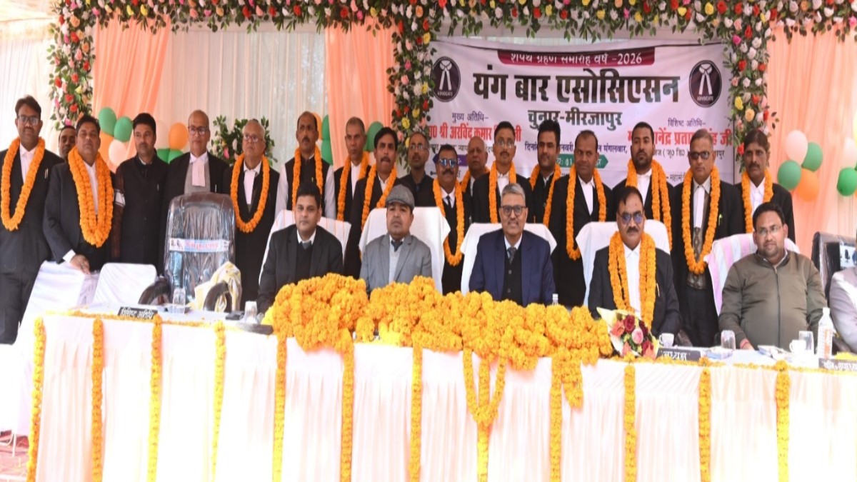 जागरण संवाददाता, चुनार (मीरजापुर)। नवयुवक अधिवक्ता समिति की नई कार्यकारिणी के पदाधिकारियों का शपथ ग्रहण समारोह मंगलवार को तहसील परिसर में आयोजित हुआ। मुख्य अतिथि जनपद न्यायाधीश अरविंद कुमार मिश्र ने नवनिर्वाचित अध्यक्ष शिवशंकर सिंह, वरिष्ठ उपाध्यक्ष राममूरत यादव, महामंत्री रामबिलास सिंह व विशिष्ट अतिथि सीजेएम राहुल कुमार सिंह तथा सिविल जज जू.डि. ज्ञानेंद्र प्रताप सिंह ने अन्य पदाधिकारियों को पद एवं गोपनीयता की शपथ दिलाई।