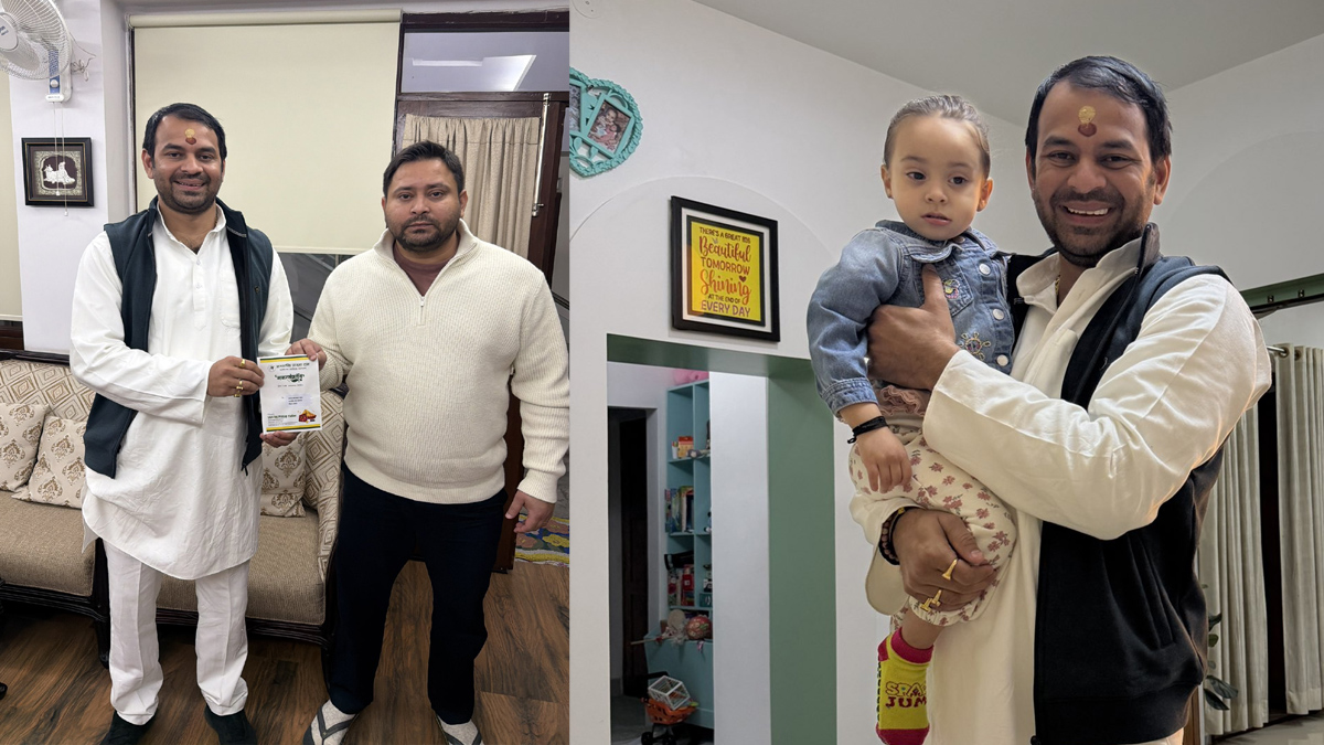 अपने भोज को ऐतिहासिक बताया और लिखा कि प्यारी भतीजी कात्यायनी को गोद में खिलाने का अद्भुत पल भी प्राप्त हुआ। उल्लेखनीय है कि तेजस्वी की दो संतानों में कात्यायनी बड़ी है।