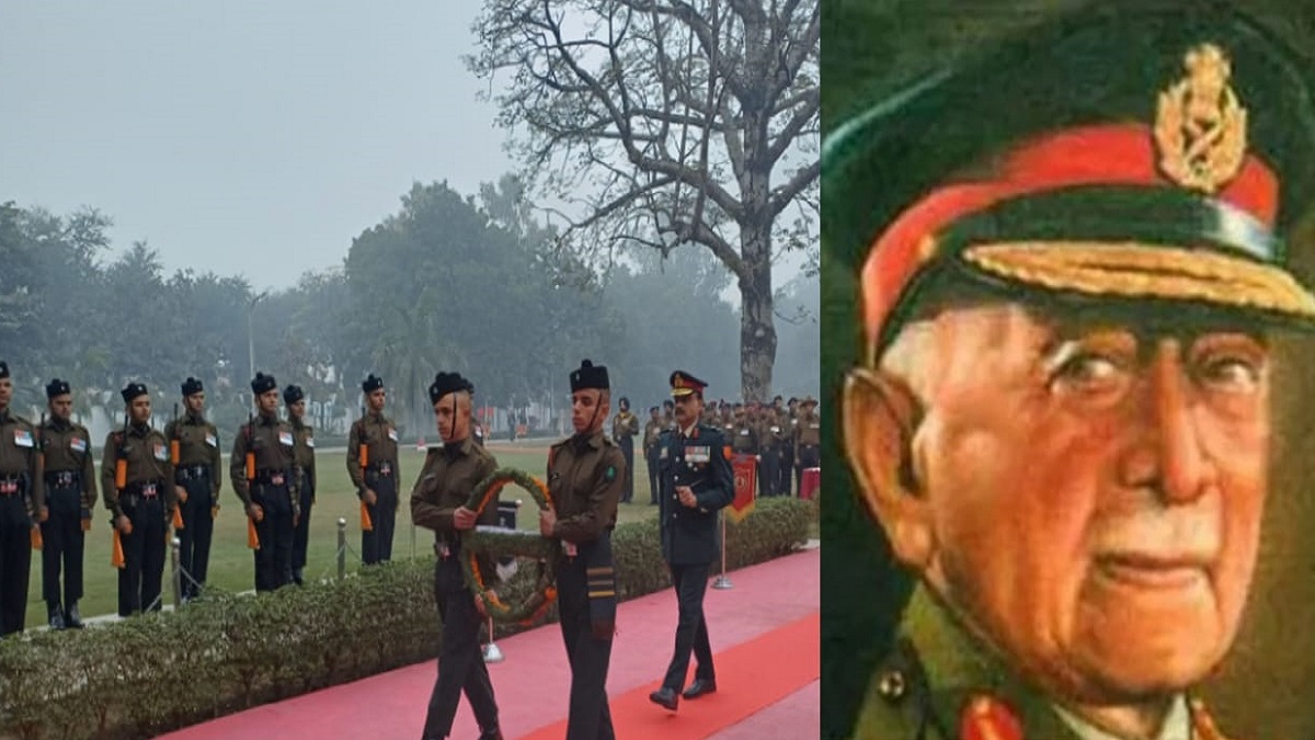 मेरठ में पूर्व सैनिक दिवस पर पाइन वार मेमोरियल पर बलिदानियों को श्रद्धासुमन अर्पित किए गए। इंसेट में फील्ड मार्शल केएम करियप्पा का फाइल फोटो।