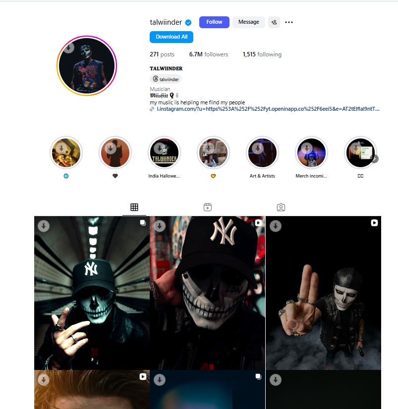 तलविंदर सिंह चेहरे पर या तो मास्क पहनकर या फिर फेस को पेंट करके अपनी पहचान को हमेशा छुपाए रखते हैं। वह अपनी प्रोफेशनल लाइफ को अपनी निजी जिंदगी से कितना दूर रखते हैं, इस बात का अंदाजा आप उनके इंस्टाग्राम से लगा सकते हैं।इंस्टाग्राम पर तलविंदर सिंह सिधु के तकरीबन 6.7 मिलियन फॉलोअर्स हैं और उनकी 271 फोटोज में एक में भी उनका चेहरा देखने को नहीं मिलेगा।