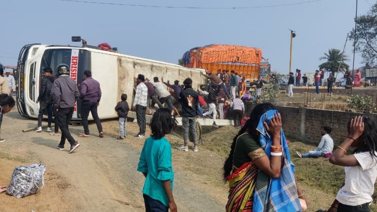 जागरण संवाददाता, दुमका। मुफ्फसिल थाना क्षेत्र के दुमका रामपुरहाट मुख्य मार्ग पर रामपुर गांव के पास बुधवार को यात्री बस और ट्रक की टक्कर हो गई। टक्कर के बाद बस अनियंत्रित होकर खेत में जाकर पलट गई। घटना में बस सवार एक दर्जन से अधिक यात्री घायल हुए हैं। जिसमें दो की हालत गंभीर है।