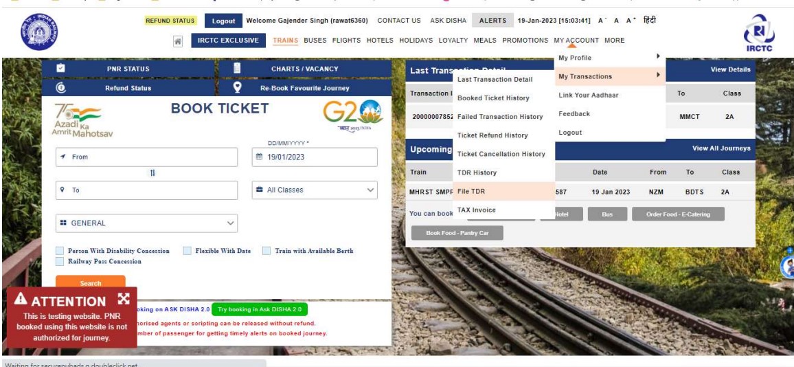 आप IRCTC पर लॉगिन करके TDR फाइल कर सकते हैं। टीडीआर फाइल करने के लिए नीचे दिए गए स्टेप्स को फॉलो करें।