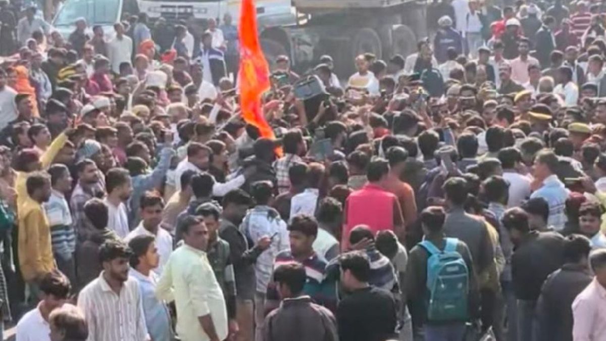 हिंदू किशोरी से दुष्कर्म के बाद उसका वीडियो प्रचलित करने की घटना के बाद थाना सुमेरपुर के सामने कानपुर सागर हाईवे पर जाम लगाकर प्रदर्शन करते लोग