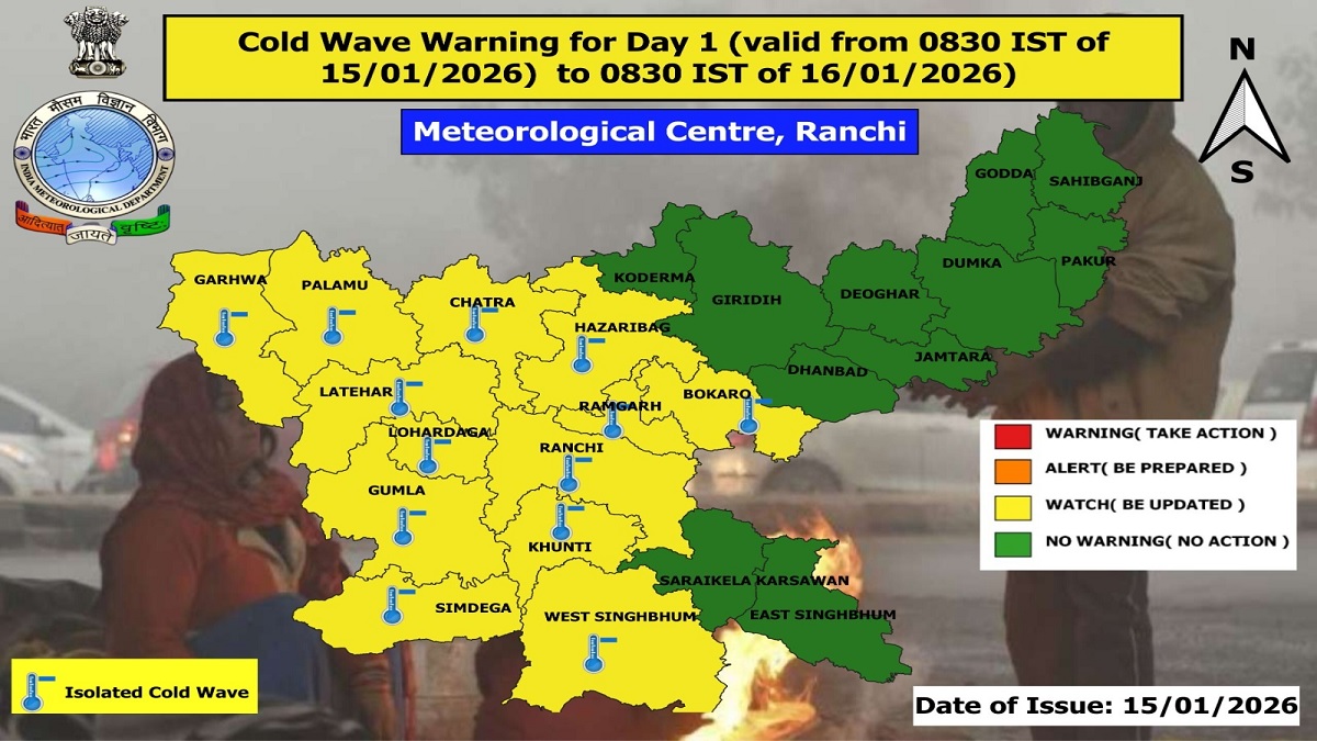 16 से 22 जनवरी के बीच राज्य में कहीं-कहीं न्यूनतम तापमान दो से 12 डिग्री तथा 23 से 29 जनवरी के दौरान चार से 14 डिग्री के बीच रहने का अनुमान है। धनबाद में भी इसका असर दिखेगा।