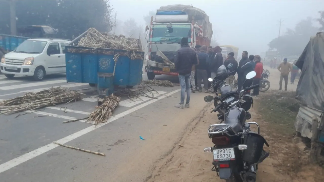 लखीमपुर में हाईवे पर ट्रक-ट्रैक्टर ट्रॉली की जोरदार टक्कर, बड़ा हादसा टला