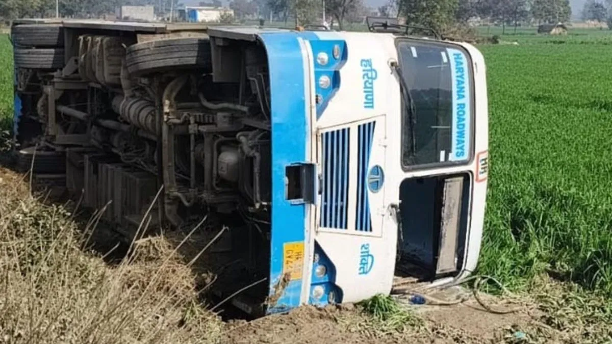 खेतों में पलटी हरियाणा रोडवेज बस। फोटो जागरण